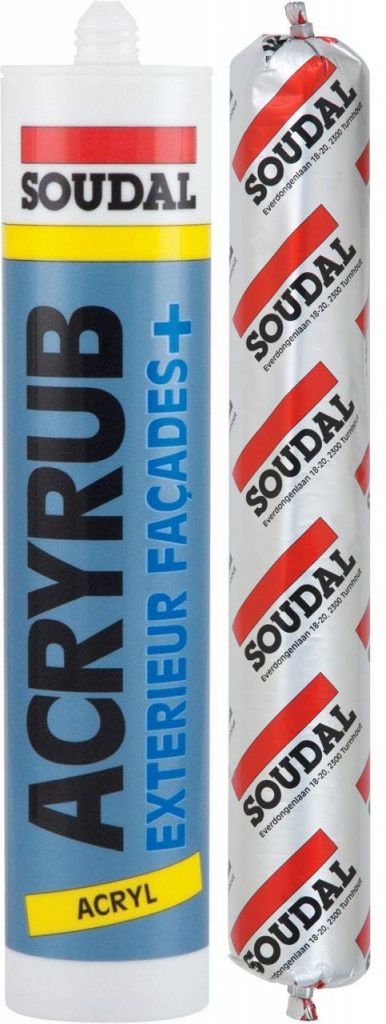 Soudal Acryrub Exterior Facade+ tek komponentli, akrilik dispersiyon esaslι, silicon emülsiyonu ile takviye edilerek üstün yapişma gücüne sahip, boyanabilen derz dolgu ve izolasyon mastiğidir.