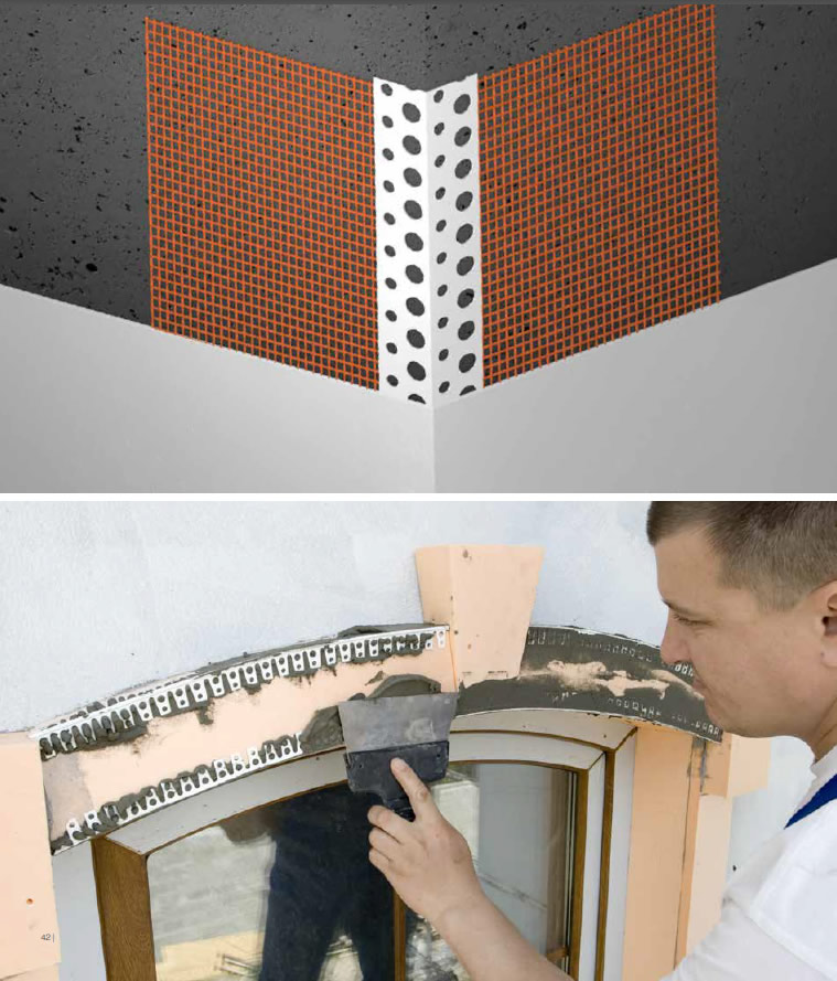 Isı yalıtım uygulamalarında binaların dar ve geniş açılı köşelerinde kullanılan alkali dayanımlı file takviyeli PVC köşe profilidir.