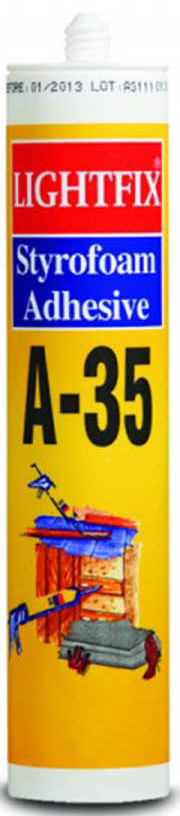 Lightfix A-35, gözenekli yüzeylere polistireni tutturmak için kullanıma hazır ve çözücüsüz yapıştırıcıdır.