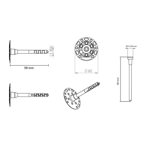 Isı yalıtım levhalarını cepheye mekanik olarak monte etmek için kullanılan plastik çivili strafor dübeldir.
