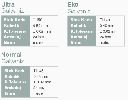 Tavan U Profili Tavan U Profili Alçı levha asma tavan yapımında kullanılan metal konstrüksiyonda taşıyıcı profilleri ve alçıpan asma tavanın terazide olmasını sağlayan taşıyıcı olmayan profillerdir. AĞIRLIK 0,260 kg./m ±%2 0,243 kg./m ±%2 0,215 kg./m ±%2 ÜRÜN ÖZELLİKLER UZUNLUK 3 m GALVANİZ SAC ozkan 2018-02-20T22:03:19+00:00 Sosyal Medyada Paylaşın FacebookTwitterLinkedinRedditTumblrGoogle+PinterestVkEmail